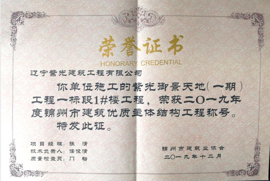 2019年度锦州市建筑优质主体结构工程称…