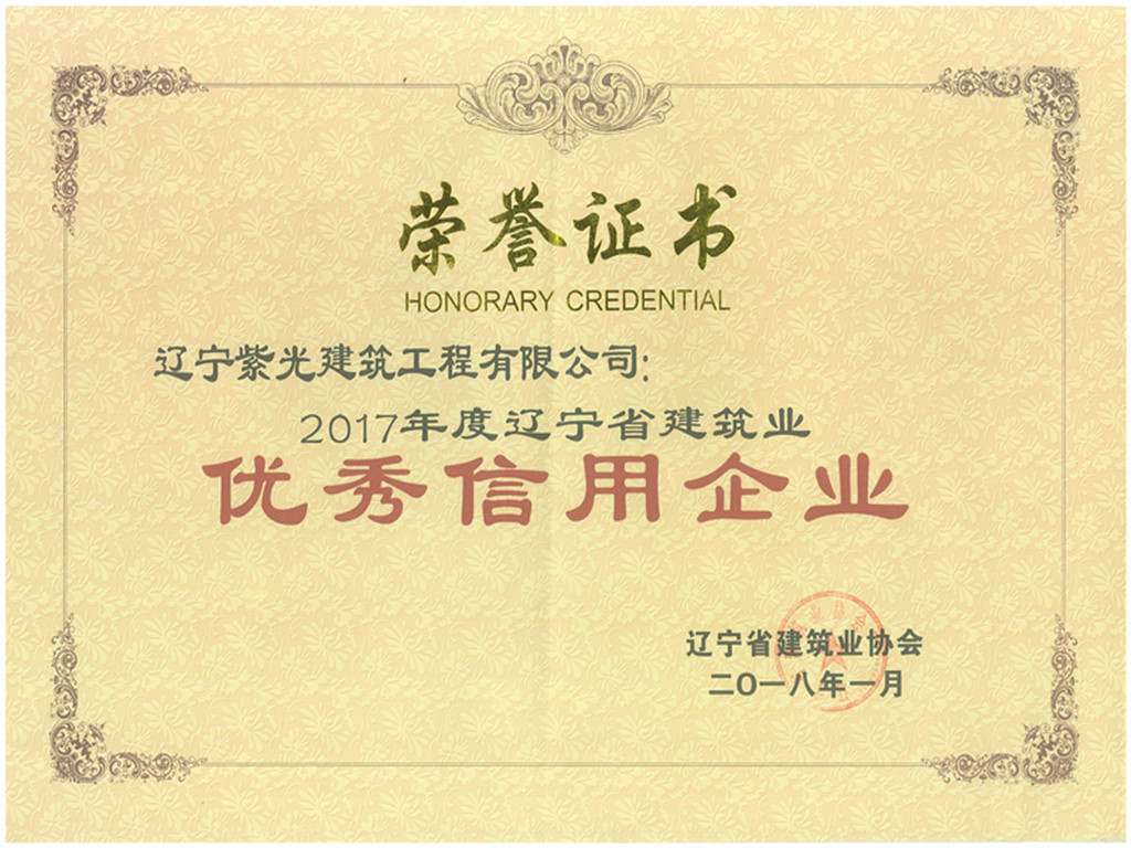 2017年度辽宁省建筑业优秀信用企业